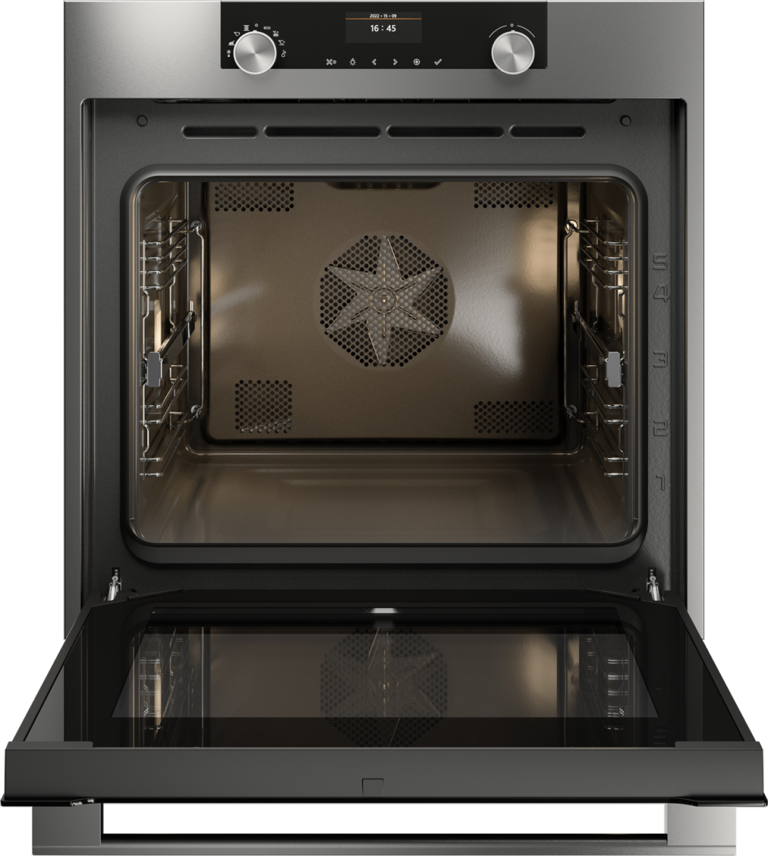 Благодаря функции плавного закрывания дверцы вы сможете легко и аккуратно закрыть дверцу духового шкафа, даже если у вас заняты руки. Долговечные амортизаторы встроены в дверные шарниры.