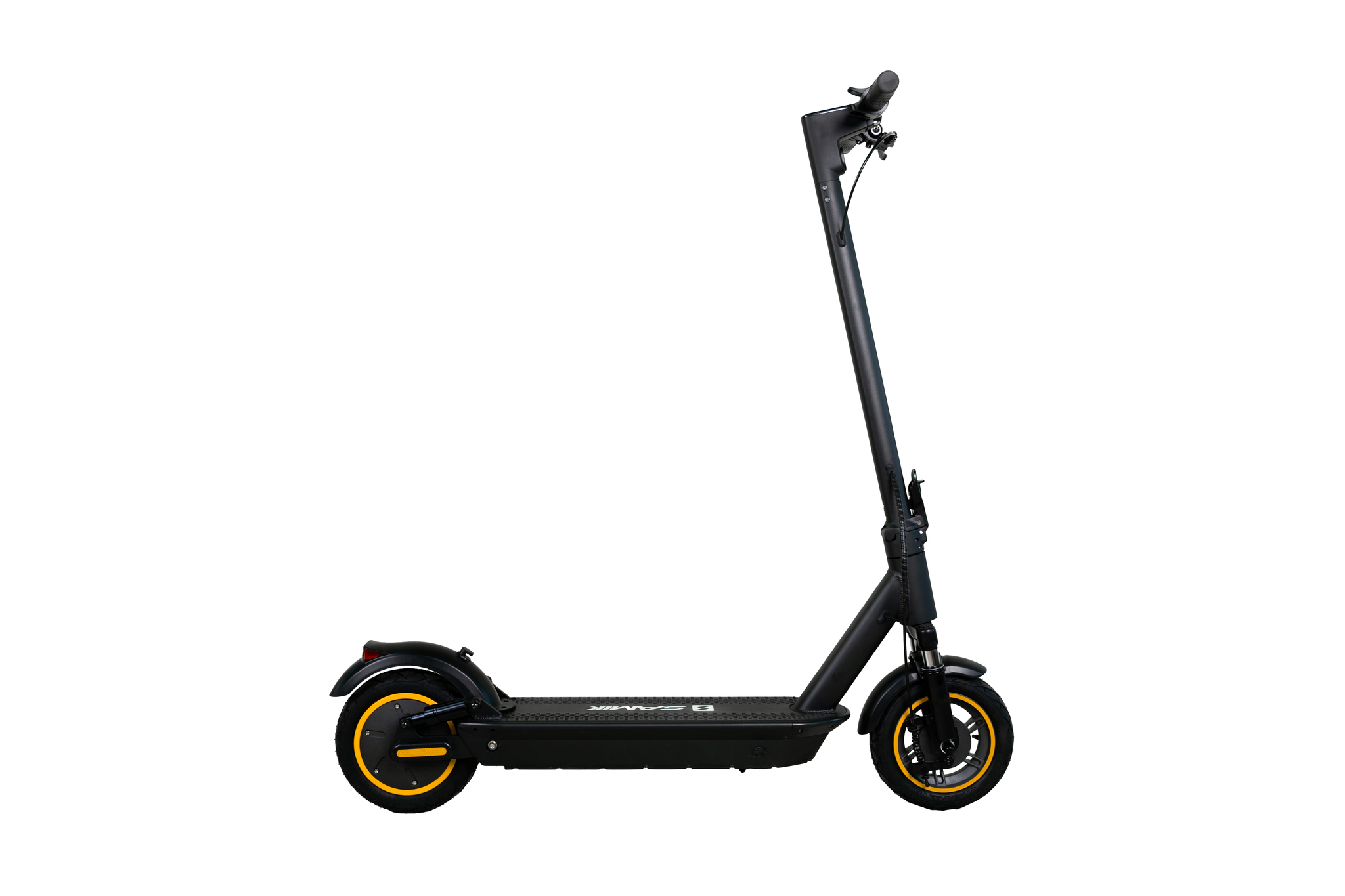 Электросамокат SAMIK MAX оснащён двигателем мощностью 500W и литий-ионной батареей 36V 14.5Ah, которая обеспечивает запас хода до 40 км. Максимальная скорость — до 31 км/ч. Модель выдерживает нагрузку до 130 кг и оснащена задним приводом, амортизаторами спереди и сзади, а также прочной алюминиевой рамой. Резиновые 10-дюймовые колёса и передний барабанный тормоз гарантируют надёжное торможение. Устройство дополнено влагозащитой IP56, LED-дисплеем, ABS-системой и поддержкой мобильных приложений для iOS и Android.