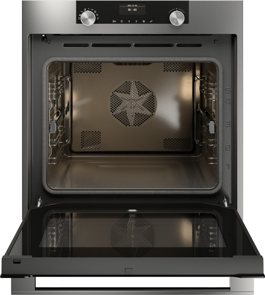 Во время пиролитической очистки духовой шкаф нагревается почти до 500 °C, в результате чего все загрязнения сгорают до пепла, который вы легко можете стереть влажной салфеткой. Просто включите духовку и она станет чистой.