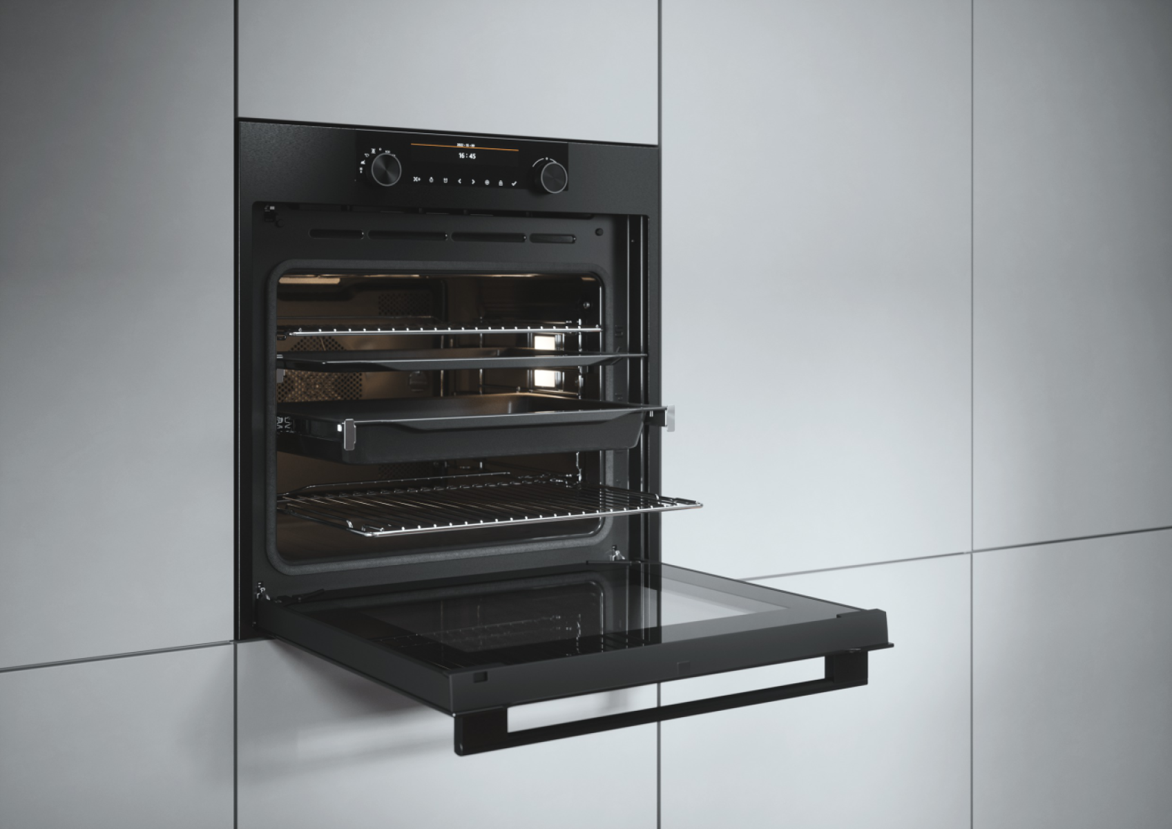 Благодаря функции плавного закрывания дверцы вы сможете легко и аккуратно закрыть дверцу духового шкафа, даже если у вас заняты руки. Долговечные амортизаторы встроены в дверные шарниры.