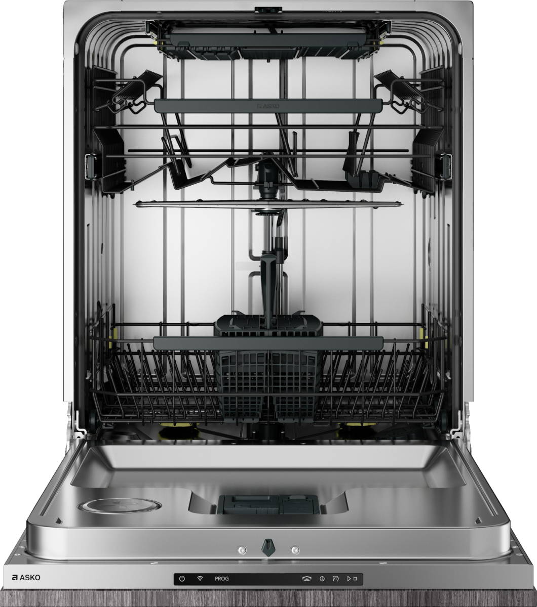 ASKO использует телескопические направляющие с шариковыми подшипниками, чтобы корзины двигались плавно и бесшумно. Для удобства загрузки и выгрузки посуды, вы также можете полностью вынуть корзину.