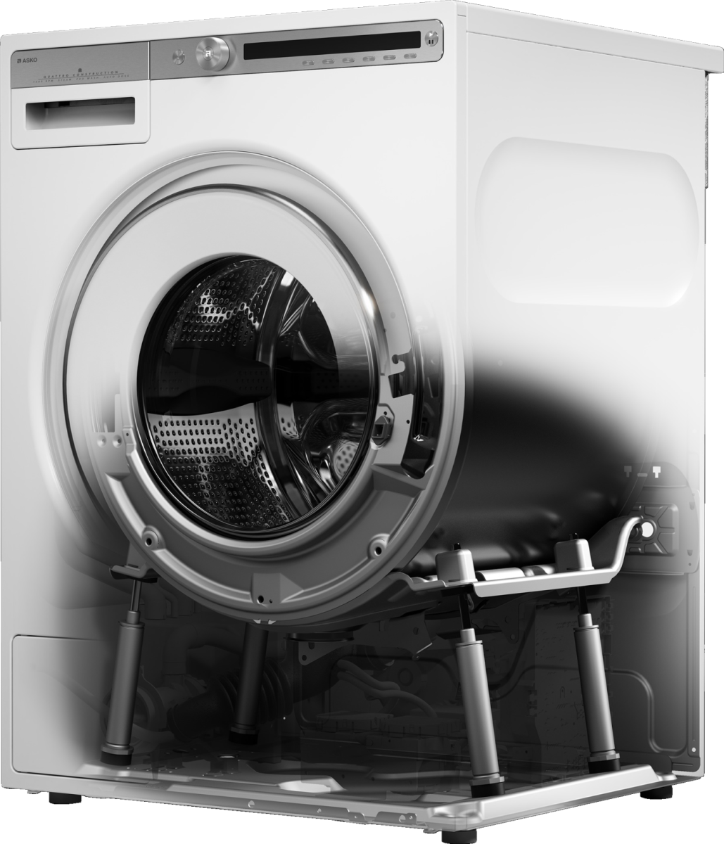 Quattro Construction™ – это уникальная система, состоящая из четырех амортизаторов, которые закреплены на основании машины и поглощают вибрационную энергию, передаваемую барабаном. Фактически, вся конструкция находится внутри корпуса машины, и отжим даже при максимальных оборотах может быть выполнен практически без вибраций. Невероятно умное решение!
