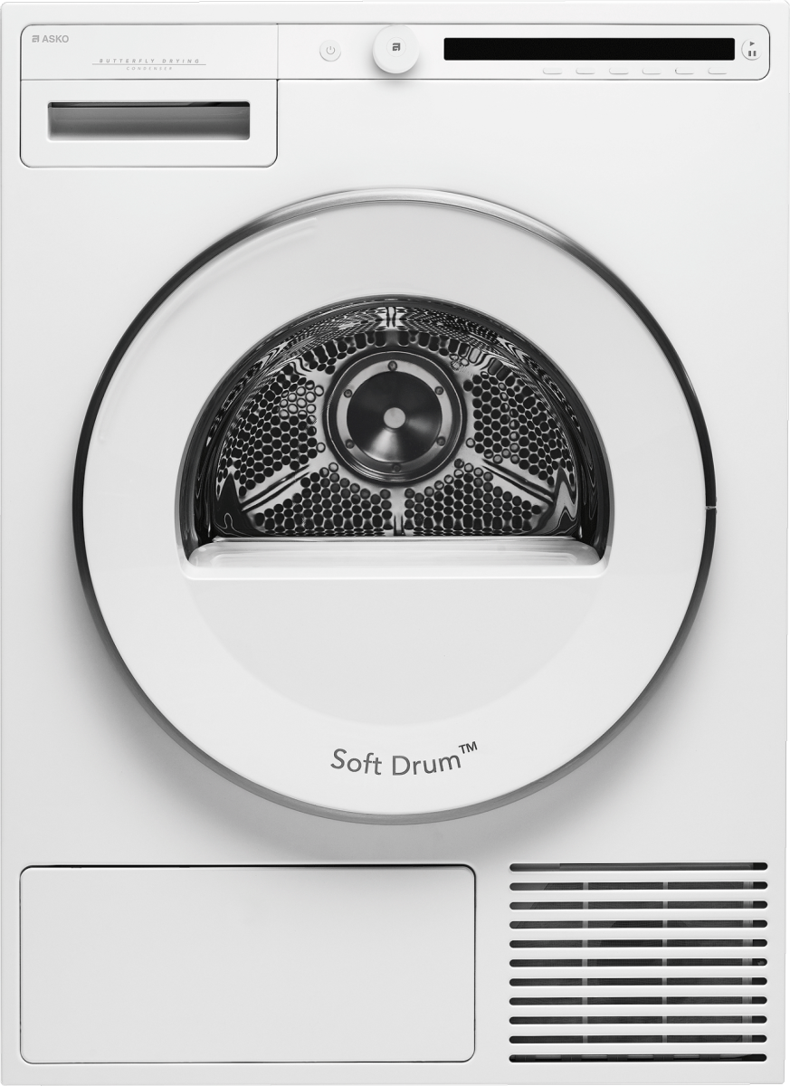 Soft Drum™ is a solution developed to enhance air flow around the load, thereby increasing the drying effect. The circular indentations with bevelled edges also have a cushioning effect that reduces wear and tear on fabrics. The new drum design allows for even and gentle drying with both small and large loads.
