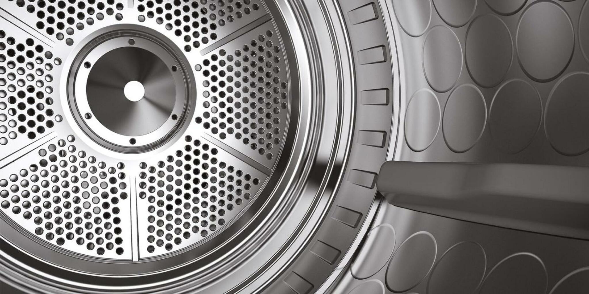 Soft Drum™ is a solution developed to enhance air flow around the load, thereby increasing the drying effect. The circular indentations with bevelled edges also have a cushioning effect that reduces wear and tear on fabrics. The new drum design allows for even and gentle drying with both small and large loads.