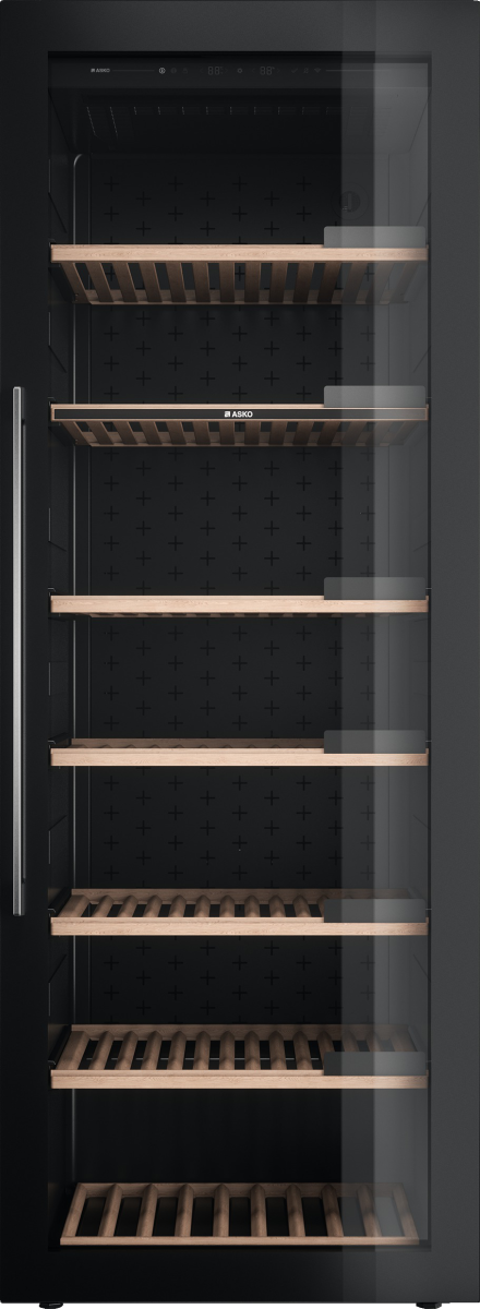Винный шкаф ASKO вмещает 261 бутылку, которые можно хранить на вместительных, удобных полках. Небольшие меловые таблички позволяют написать, что за коллекция хранится на той или иной полке.